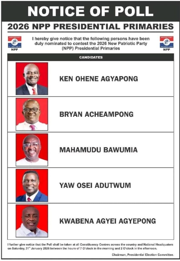 The New Patriotic Party (NPP) has successfully completed the balloting process to determine the order in which its presidential candidates will appear on the ballot for the upcoming January 31, 2026, presidential primary.